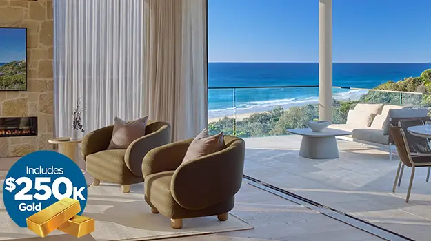 Stop everything - and take a moment to dream about a home that is nothing short of iconic. Sitting high above Burleigh Beach, this much-admired mansion known as 'Dune' commands breathtaking views of azure ocean across its bold, sculptural levels. And with $500,000 in gold included, this becomes a $13 million prize that feels like a five-star holiday. Dream Home Art Union Draw 429 is the chance for it all to be yours, for only a $5 ticket.