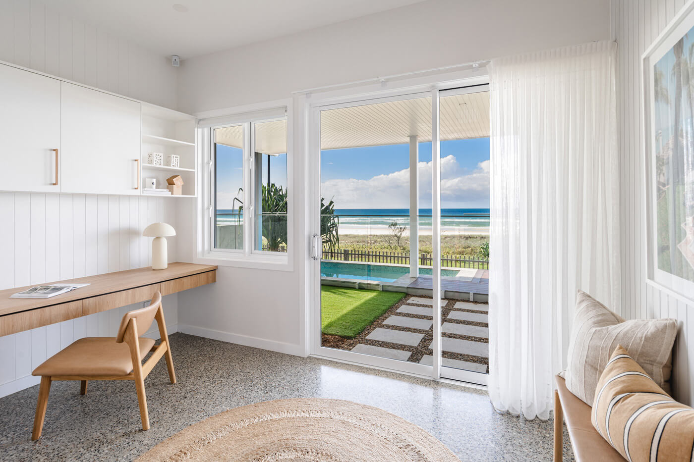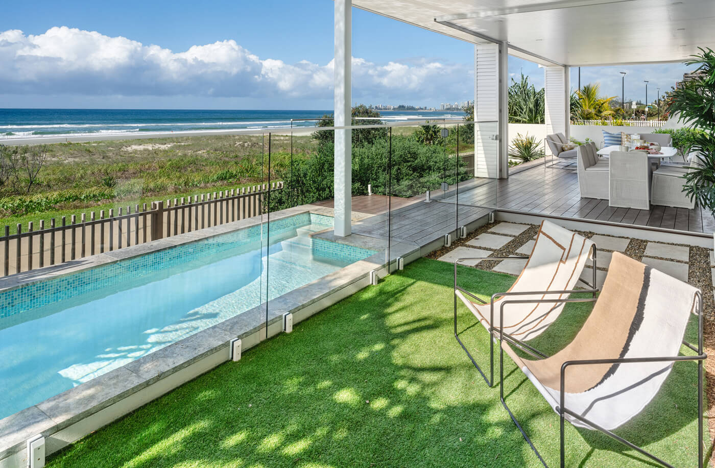 Architecturally designed and finished to the highest standards, this unique home maximises its absolute oceanfront position with high ceilings, wide doors and windows and a poolside entertaining area. Top quality appliances and furniture worth $207,573 are all included, so there’s nothing to do but apply sunscreen and start living the dream.