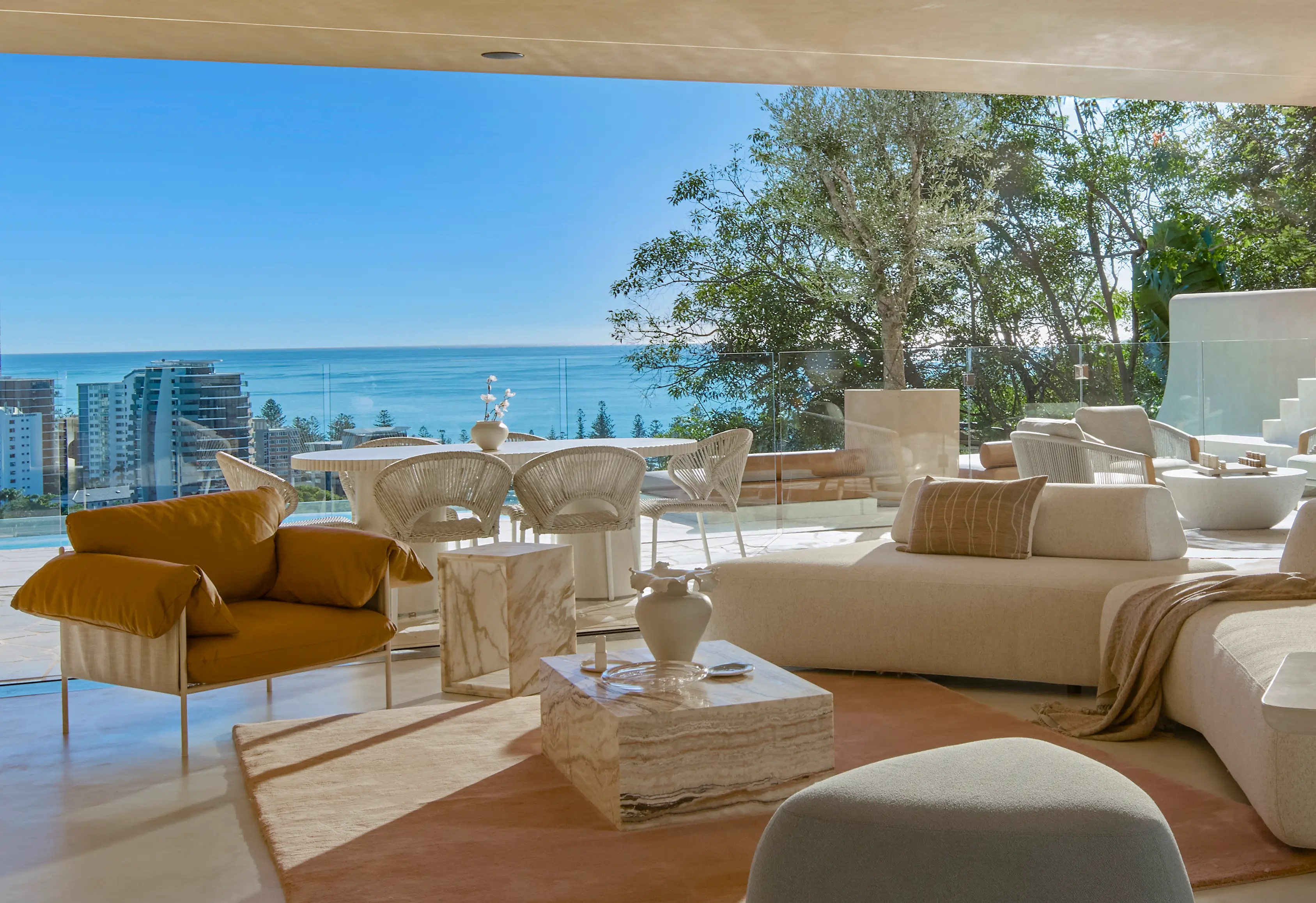 Perched high above the coastline, this bold, sculptural masterpiece commands panoramic views of the Pacific Ocean. With its sweeping architectural lines, light-filled interiors, and tranquil outdoor spaces, ‘Dune’ captures the very essence of Burleigh’s surf, style, and serenity.