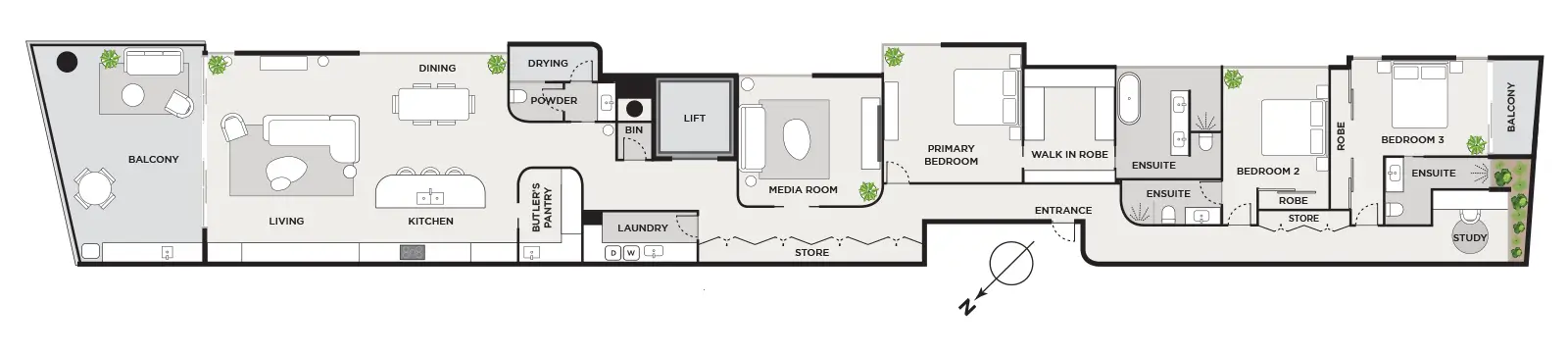 - Boutique complex of only 15 apartments, pool, BBQ and extensive landscaping on the ground floor.