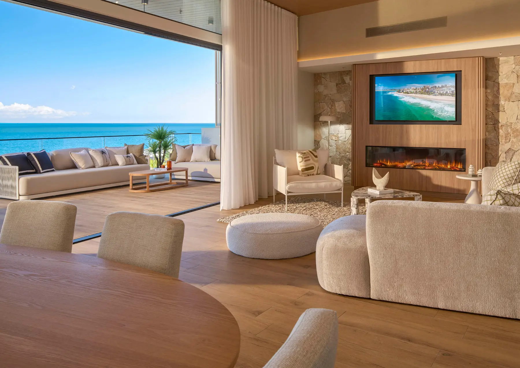 The warm, sandy tones of ‘Vaucluse’ are the epitome of elevated coastal design. Finishes in linen, stone, timber and marble blur the lines between inside and out. With its gently sweeping balconies, the tower appears gracefully sculpted from the headland itself, offering a sense of effortless coastal elegance.